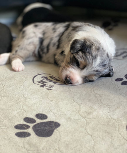 Daisy is one of Bella's puppies that I produced. I kept two puppies from her litter, herself and her sister Penny. Daisy is loving and independent, she loves to love on and take naps with her humans but also likes doing her own thing. She is a very sweet and calm dog. Her best friend is Penny.